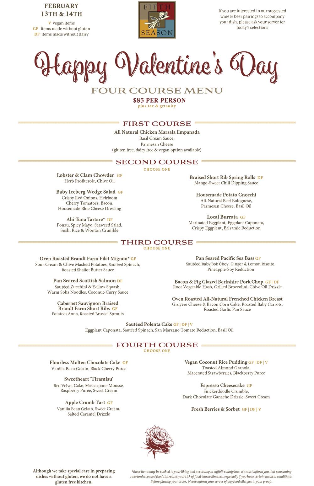 Valentine’s Day Menu